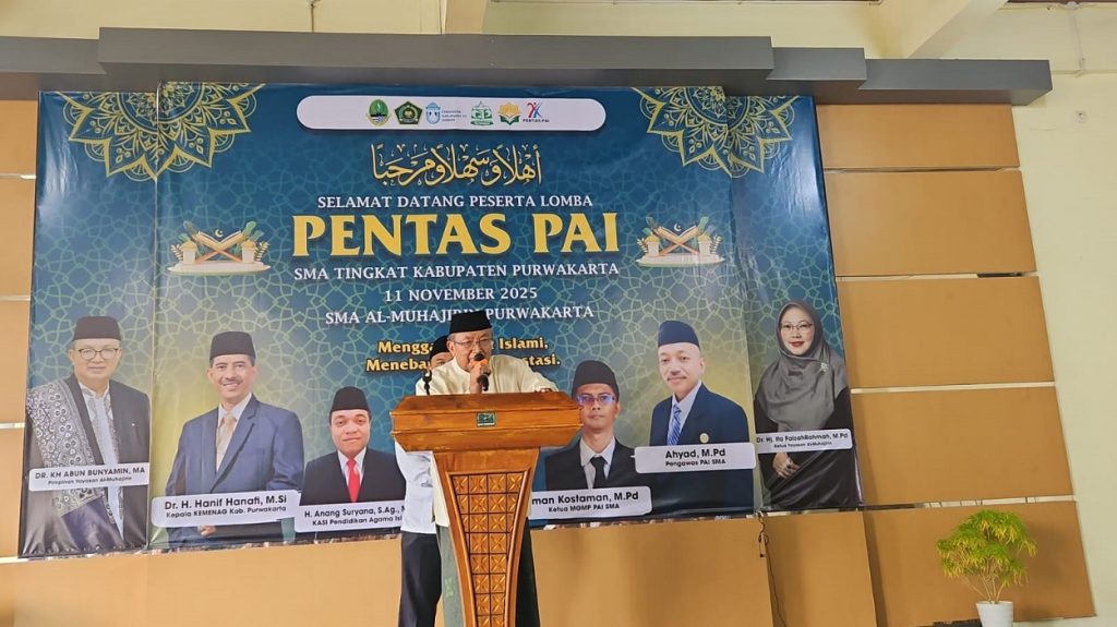 PURWAKARTA — Aula Syaikh Datul Kahfi, Al-Muhajirin Kampus Pusat, menjadi pusat kegiatan Pentas Pendidikan Agama Islam (PAI) SMA Tingkat Kabupaten Purwakarta yang digelar pada Selasa, 11 November 2025.