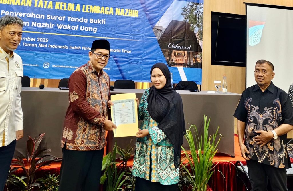 Penyerahan surat pendaftaran tersebut dilaksanakan pada Sabtu, 13 Desember 2025, bertempat di Hotel Oakwood, Jl. TMII Pintu 1, Jakarta Timur, dalam rangkaian kegiatan pembinaan dan penguatan tata kelola lembaga nazhir.