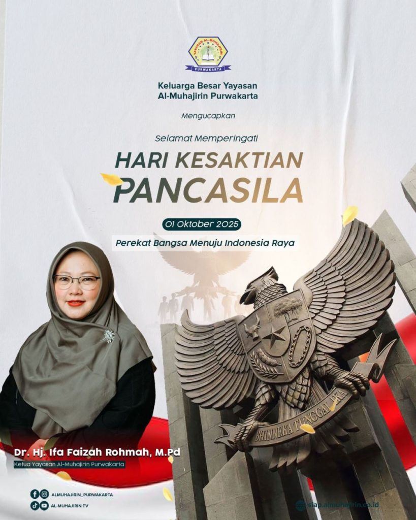 PURWAKARTA – Ketua Yayasan Al-Muhajirin Purwakarta sekaligus Ketua LP Ma’arif Nahdlatul Ulama Jawa Barat, Dr. Hj. Ifa Faizah Rohmah, M.Pd, menyampaikan ucapan selamat memperingati Hari Kesaktian Pancasila yang diperingati setiap 1 Oktober.