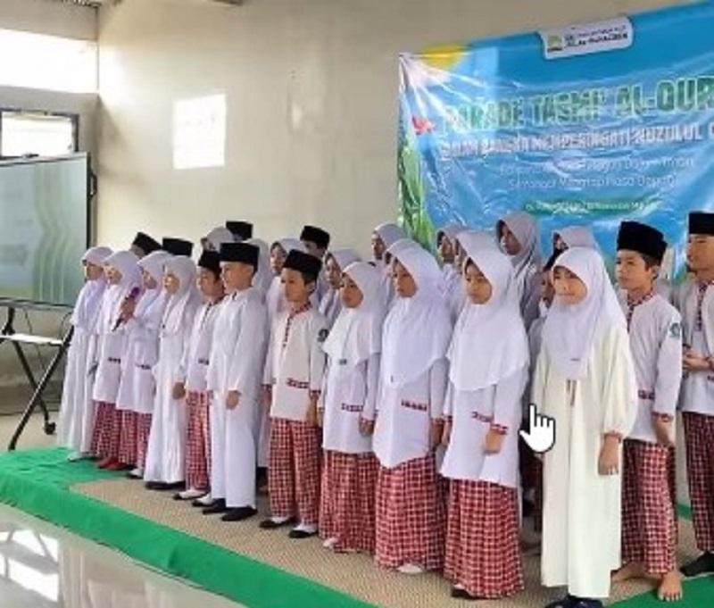 ALMUHAJIRIN- Suasana khidmat dan penuh haru menyelimuti lingkungan SD Plus Al-Muhajirin saat lantunan ayat suci Al-Qur’an menggema dalam kegiatan Parade Tasmi’ memperingati Nuzulul Qur’an. Mengusung tema “Bersama Al-Qur’an Teguh Dalam Iman, Semangat Menatap Masa Depan”, kegiatan ini tidak sekadar menjadi agenda seremonial, tetapi menjelma sebagai panggung dedikasi para santri dalam menjaga dan menguatkan hafalan Al-Qur’an.