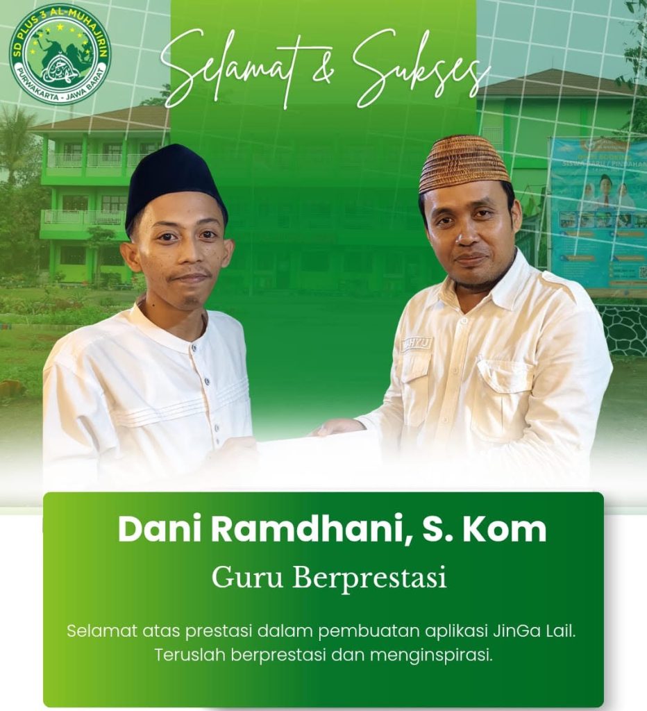 AL-MUHAJIRIN— Semangat inovasi di dunia pendidikan kembali ditunjukkan oleh tenaga pendidik di lingkungan SD Plus 3 Al-Muhajirin. Salah satu guru terbaiknya, Dani Ramdhani, berhasil menorehkan prestasi melalui pengembangan aplikasi digital bernama JinGa Lail.