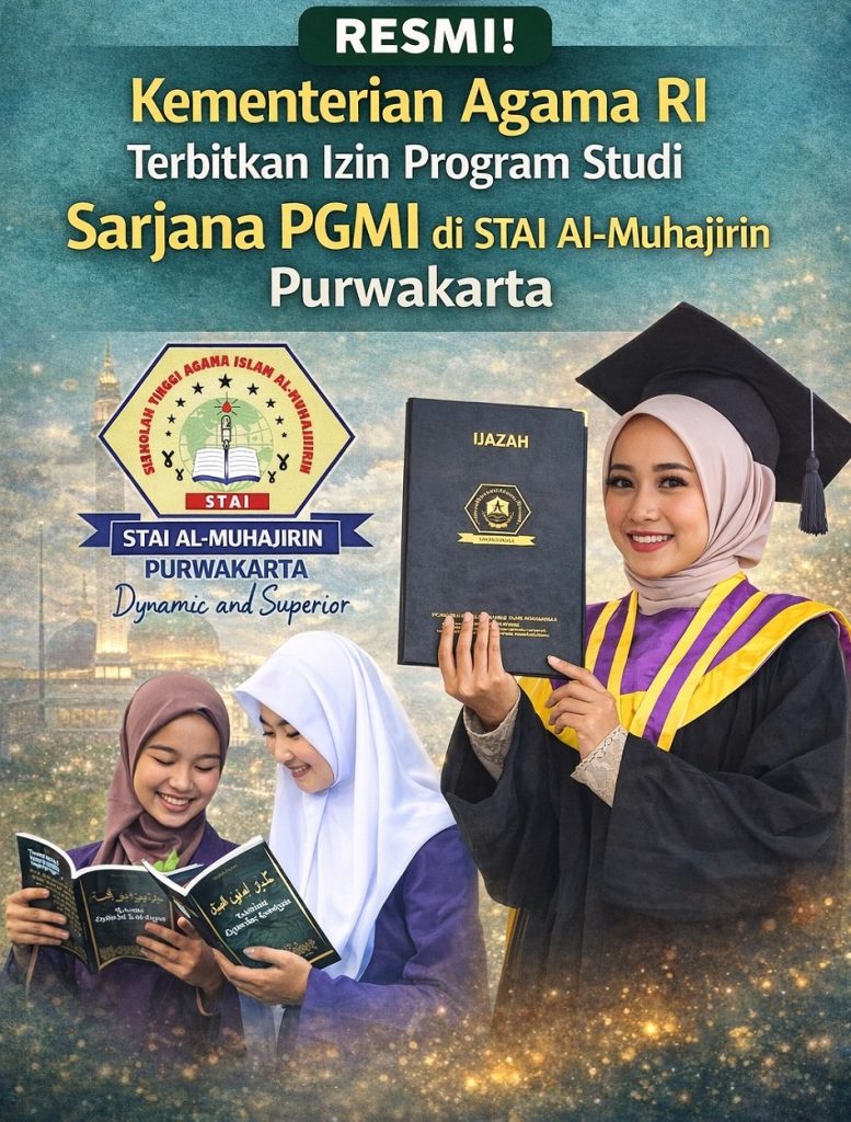 AL-MUHAJIRIN- Kementerian Agama Republik Indonesia telah resmi memberikan izin penyelenggaraan Program Studi Pendidikan Guru Madrasah Ibtidaiyah (PGMI) untuk tingkat sarjana pada Sekolah Tinggi Agama Islam (STAI) Al-Muhajirin Purwakarta.